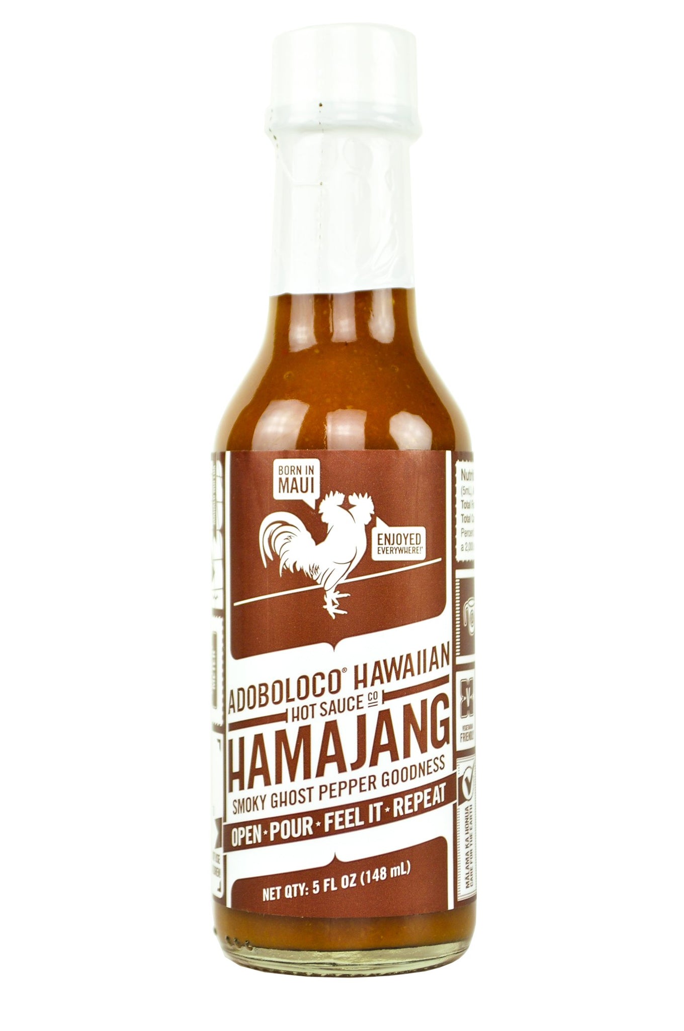 Ingredients: Apple cider vinegar, ghost peppers + mixed peppers, sea salt, garlic